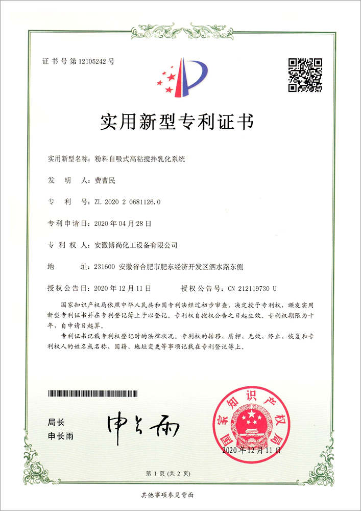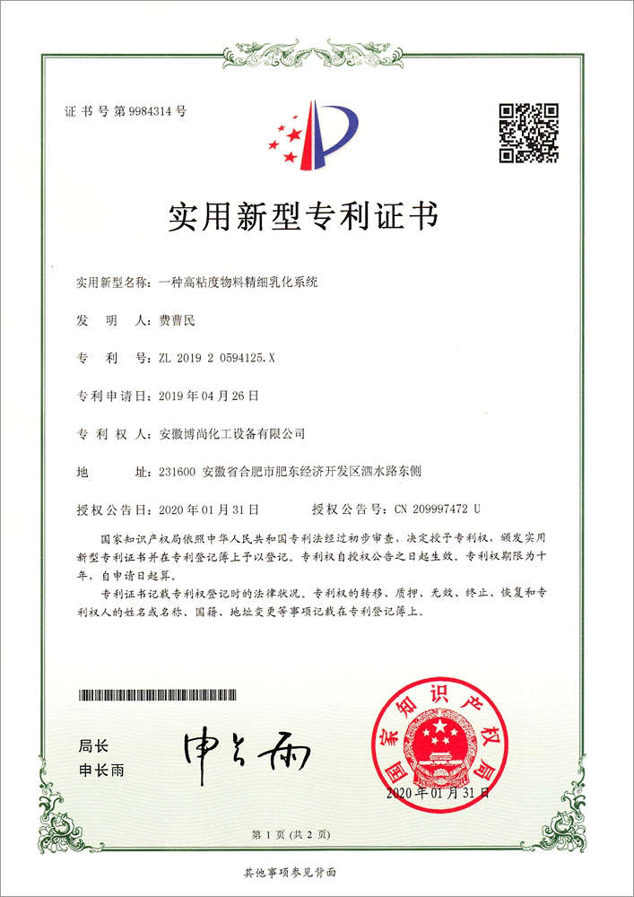 安徽博進化工機械有限公司主要從事流體分散、混合、研磨、乳化和攪拌等機械設(shè)備的設(shè)計、制造、銷售、安裝和售后服務(wù)。公司成立于2006年3月,經(jīng)過數(shù)十年的發(fā)展和進步,已經(jīng)建立起完善的現(xiàn)代企業(yè)組織制度,包含國內(nèi)和國際營銷團隊、技術(shù)研發(fā)服務(wù)中心和生產(chǎn)制造中心等。公司在安徽合肥市肥東經(jīng)開區(qū)購買了土地并于2010年10月建設(shè)成近5000平方米標準化廠房和標準辦公樓,成立安徽博尚化工設(shè)備有限公司作為核心制造中心和集團公司總部。