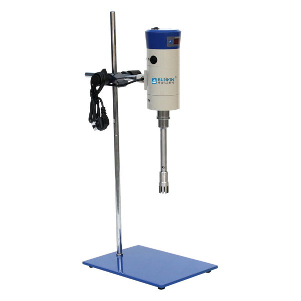 實驗室高剪切均質乳化機強勁的馬達進行高速旋轉使轉、定子之間形成真空,物料從轉、定子上部和底部吸入。強大動能使轉子產生極高的線速度,使物料在轉、定子間隙之間經過強烈的撞擊、破碎、離心擠、液層摩擦、強力剪切之后飛射出去,在多種不同方向力的作用下,產生強大紊流。物料在適量乳化劑和成熟工藝下經過一定時間反復循環解聚、分散、均質、細化、剪切產生穩定乳狀液。