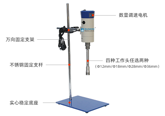 設備帶有鎖緊及升降手柄,能夠快速升降和固定;均質頭快拆式設計,更換方便,清洗容易。