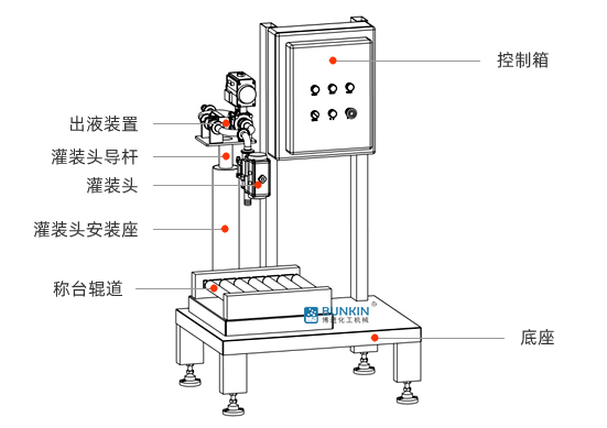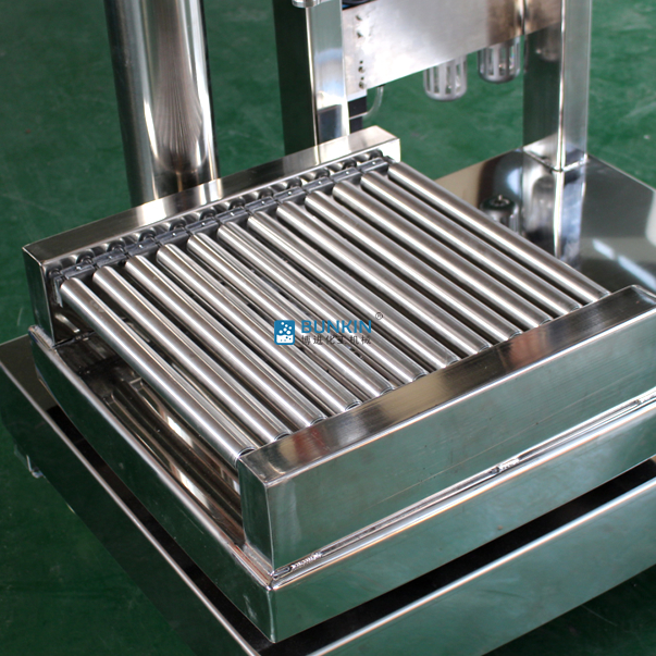 個性化設計,可一人完成操作,設定指定灌裝量,灌裝按鈕一鍵完成自動清零,自動去皮功能。采用輥軸輸送,可隨操作工人習慣調整放桶位置均可灌裝。