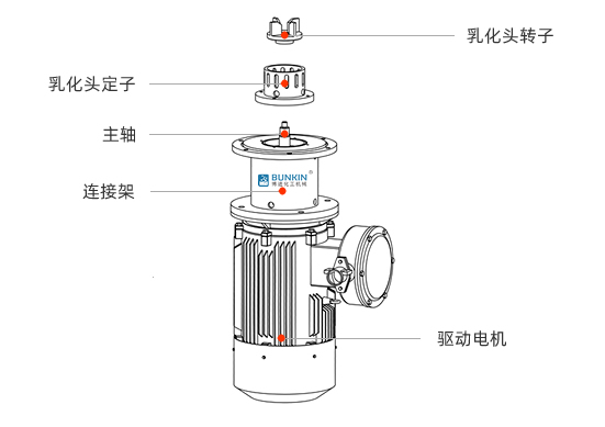 在馬達的驅動下,高速旋轉的轉子迅速將釜底的物料雙向吸入轉,定子工作區,在十分狹窄的間隙內承受著劇烈機械運動和液力剪切,使物料剪切、撕裂、破碎,同時迅速與中、高層物料進行混合均質,并且更有效地配合立式乳化機完成乳化均質、粉碎、混合反應等工藝過程。