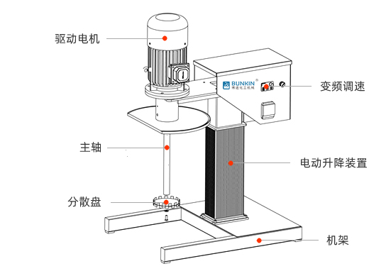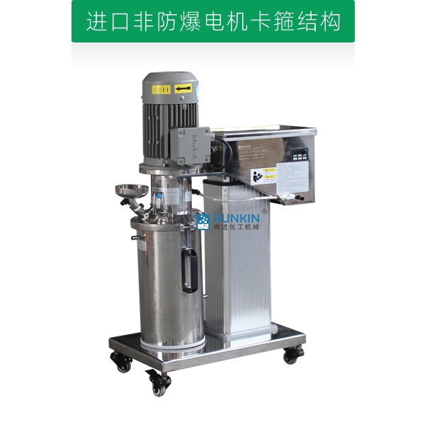設(shè)備帶有電動升降,噪音低能夠快速升降和固定密封桶;分散盤采用內(nèi)六角螺栓與主軸固定,能夠方便快速拆卸更換,清洗容易;帶有鎖扣密封條裝置,可以快速將密封桶固定。