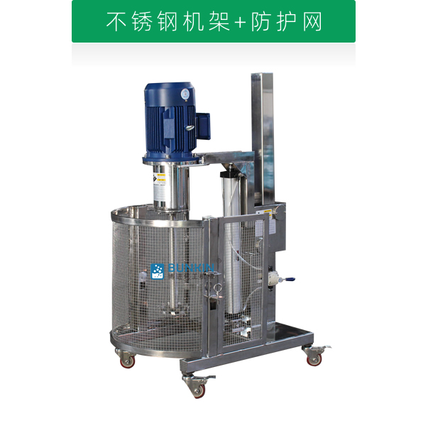 設備轉速可達1500rpm,線速度20m/s以上,能夠快速的將粉料均勻分散到液料里面;物料由于受到極高的剪切力,分散均勻,形成很好的懸浮效果。