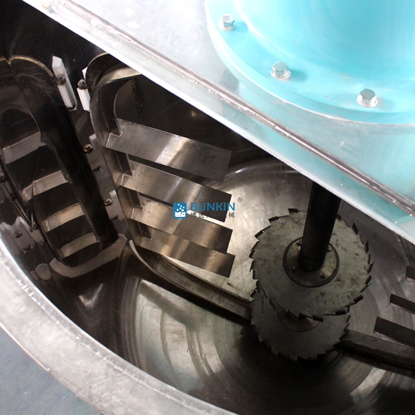 在攪拌器上裝有刮刀,緊貼釜壁刮拭,釜壁經自動拋光機拋光,確保活動刮刀在旋轉時把釜壁的物料完全刮掉,使釜壁無滯留料,提高混合效果。