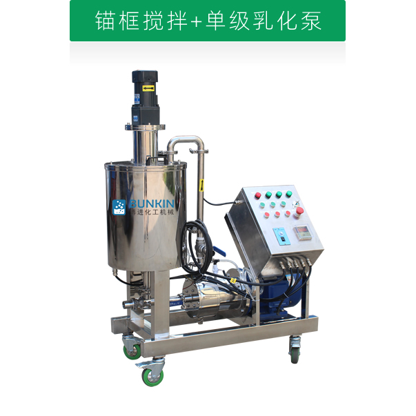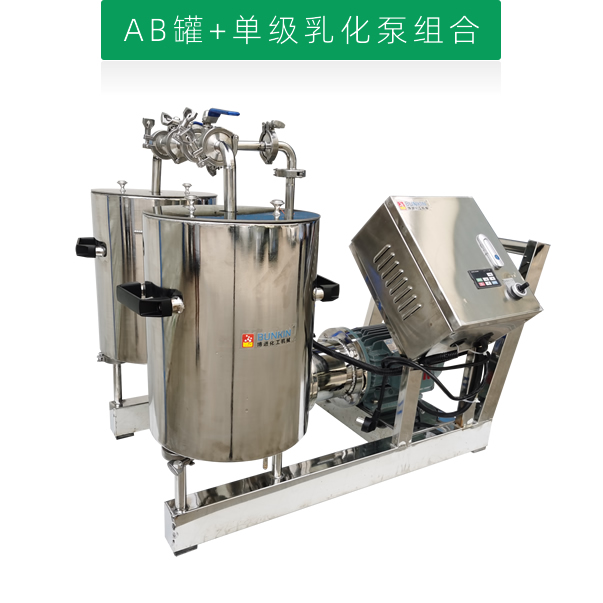 單級高剪切乳化泵采用臥式結構。在狹長的工作腔內裝有一組轉定子,轉定子可設計成單級兩層或者單級六層結構,轉定子對偶耦合。由電機帶動中間軸進行高速運轉,轉定子形成真空,物料從進口被吸入轉定子腔內,強大動能使轉子產生極高的線速度,使物料在轉、定子間隙之間經過強烈的撞擊、破碎、離心擠、液層摩擦、強力剪切之后飛射出去,在多種不同方向力的作用下,產生強大紊流,物料從出口流出。并可根據工藝要求進行多次循環處理。