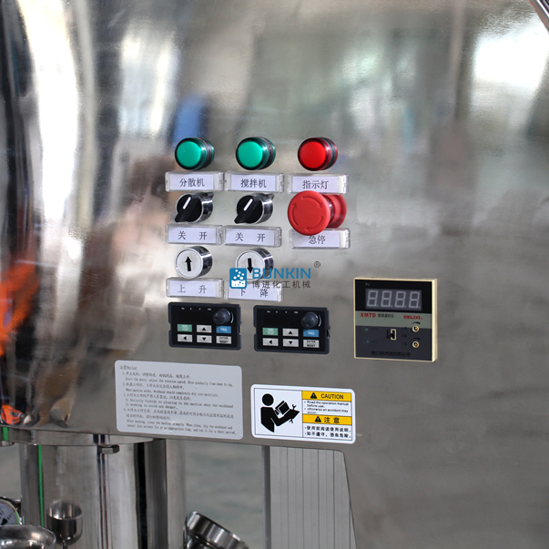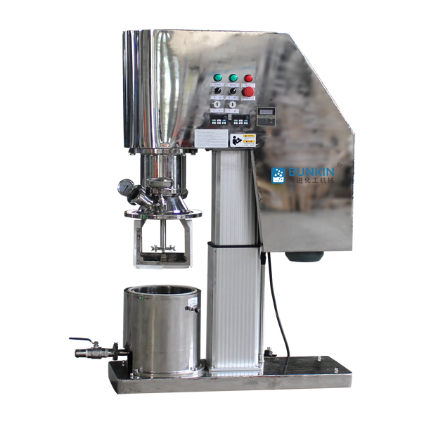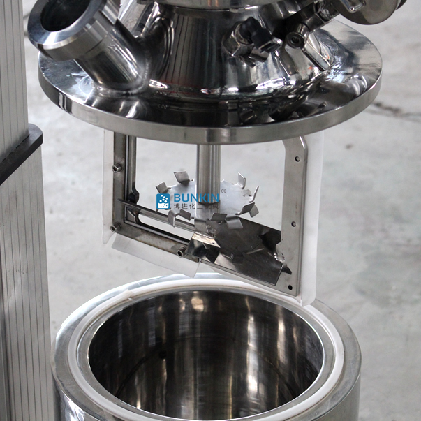 同心雙軸液壓分散機攪拌漿葉在動力機組的驅動下,沿固定方向旋轉;在旋轉過程中,驅使物料做軸向旋轉和徑向旋轉。攪拌機內的物料,同時存在軸向運動和圓周運動,因而同時存在剪切攪拌和擴散攪拌等幾種攪拌形式。在攪拌槳上裝有刮刀,緊貼桶壁刮拭,刮刀隨著攪拌器旋轉時把桶壁的物料完全刮掉,使桶壁無滯留料,同時提高混合效果。分散盤通過高速運轉,使物料呈環狀流,產生強旋渦,呈螺旋狀下降到渦流底部。粒子間產生強烈的剪切撞擊與磨擦,達到迅速分散、溶解功能。攪拌盤通過圓周運動,產生較好的徑向作用里,加速物料循環,提高分散效率,液壓升降攪拌機通過液壓泵工作驅動液壓柱塞升降,帶動整個傳動機構和工作組升降。